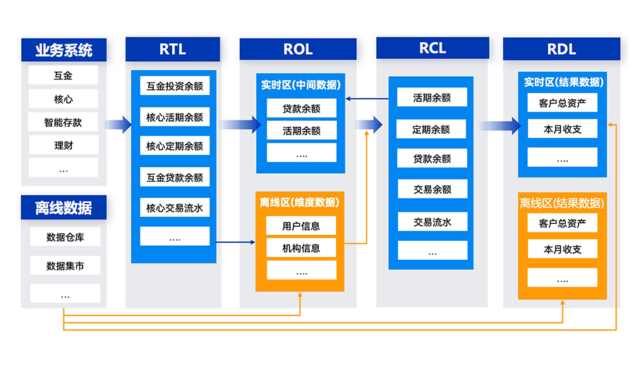 · ROL:貼源層,分為實時區和離線區兩個區域,實時區存放經過一定清洗/標準化的數據,離線區存放每日同步的離線維度數據;