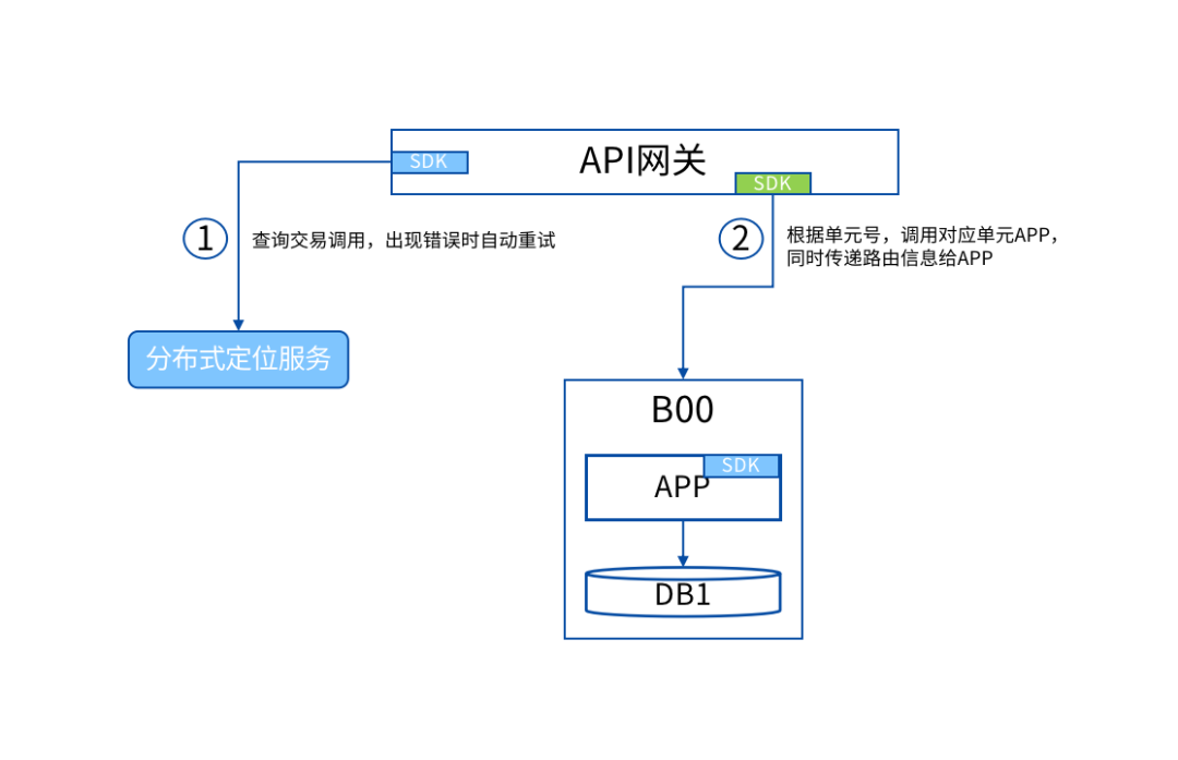 1.網關收到請求或單元內系統發起外調時,傳入路由類型和路由值,通過sdk發送到分布式定位服務;