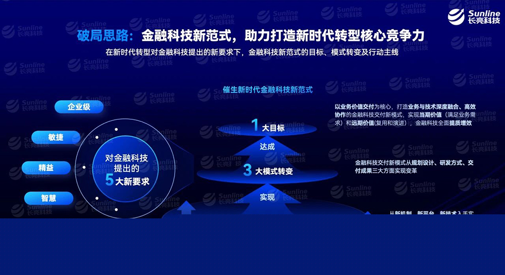 基于這樣的認識,長亮科技提出了一套全新的金融科技變革策略。要真正實現金融科技的轉型,必須構建一個系統化的“1=3+3”的新范式,以助力企業塑造核心競爭力。