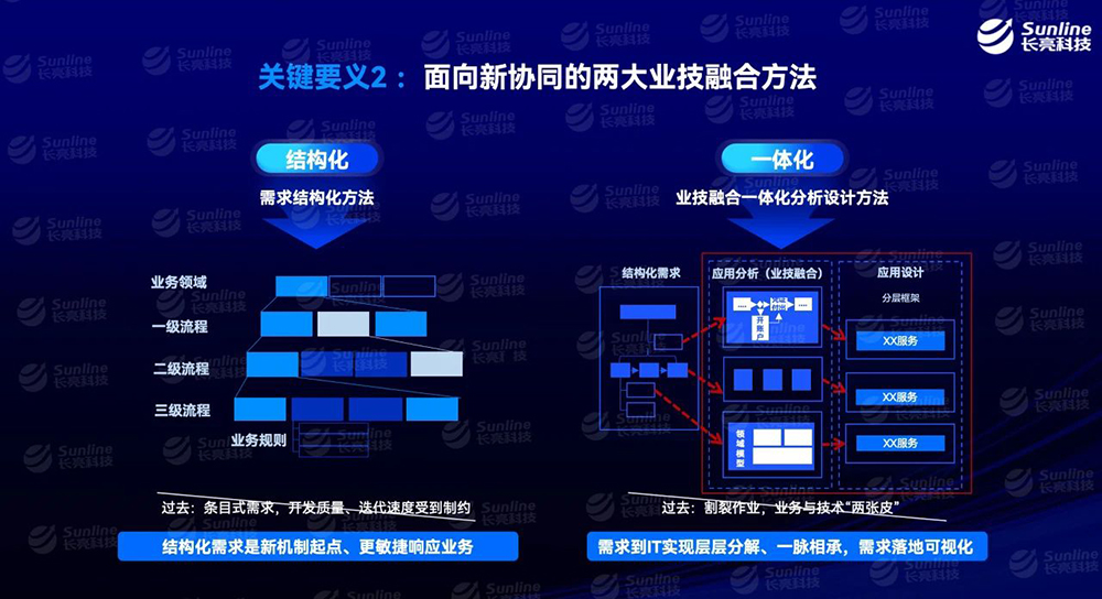從系統交付到資產交付:從原先文檔和系統脫離的交付模式轉向全過程、標準化、結構化和在線保鮮的資產交付模式,確保需求-系統-文檔資產的透明映射,資產可觀測、可追溯,同時資產沉淀了人的經驗和專業知識,用以應對持續迭代演進、快速運維定位及人員崗位變動等問題。長亮科技之前一個客戶講到,用了新的金融科技新范式做完交付以后,讀代碼就像讀小說一樣,是一種享受,以此可以理解結構化、標準化以后它的效果。