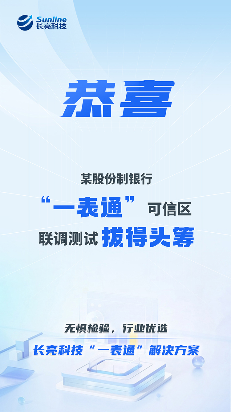 恭喜!某股份制銀行“一表通”可信區聯調測試拔得頭籌!