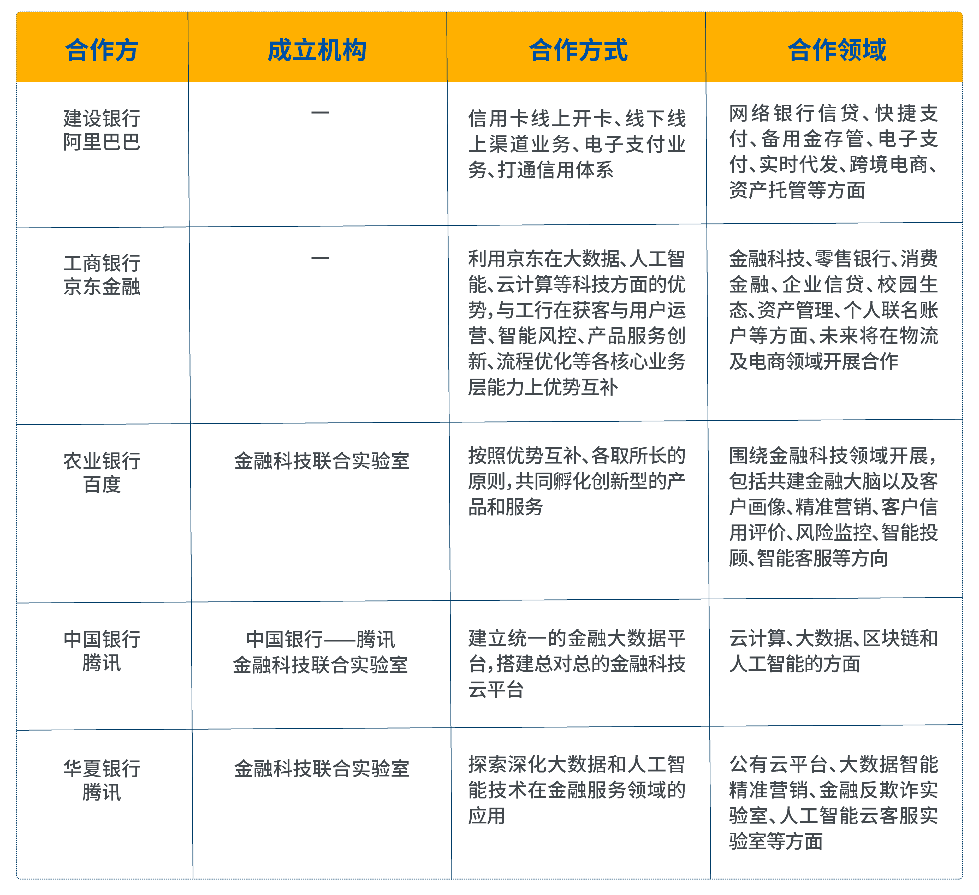 銀行與互聯網巨頭合作方式與領域