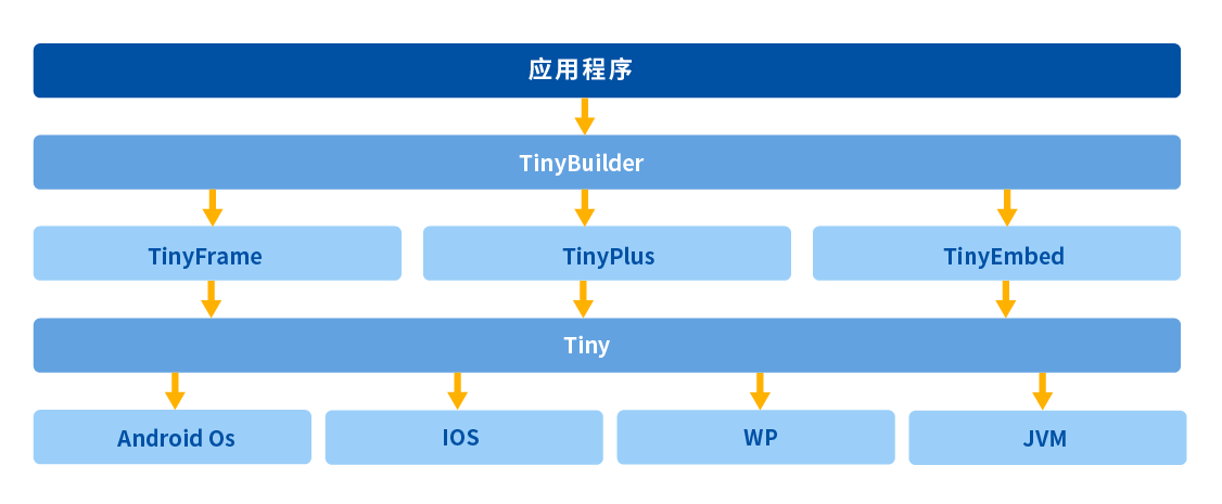 ? 通過TinyBuilder 構建應用程序,開發一套tml、css、腳本代碼,就可以實現一次開發,多平臺,多款終端,隨處運行。