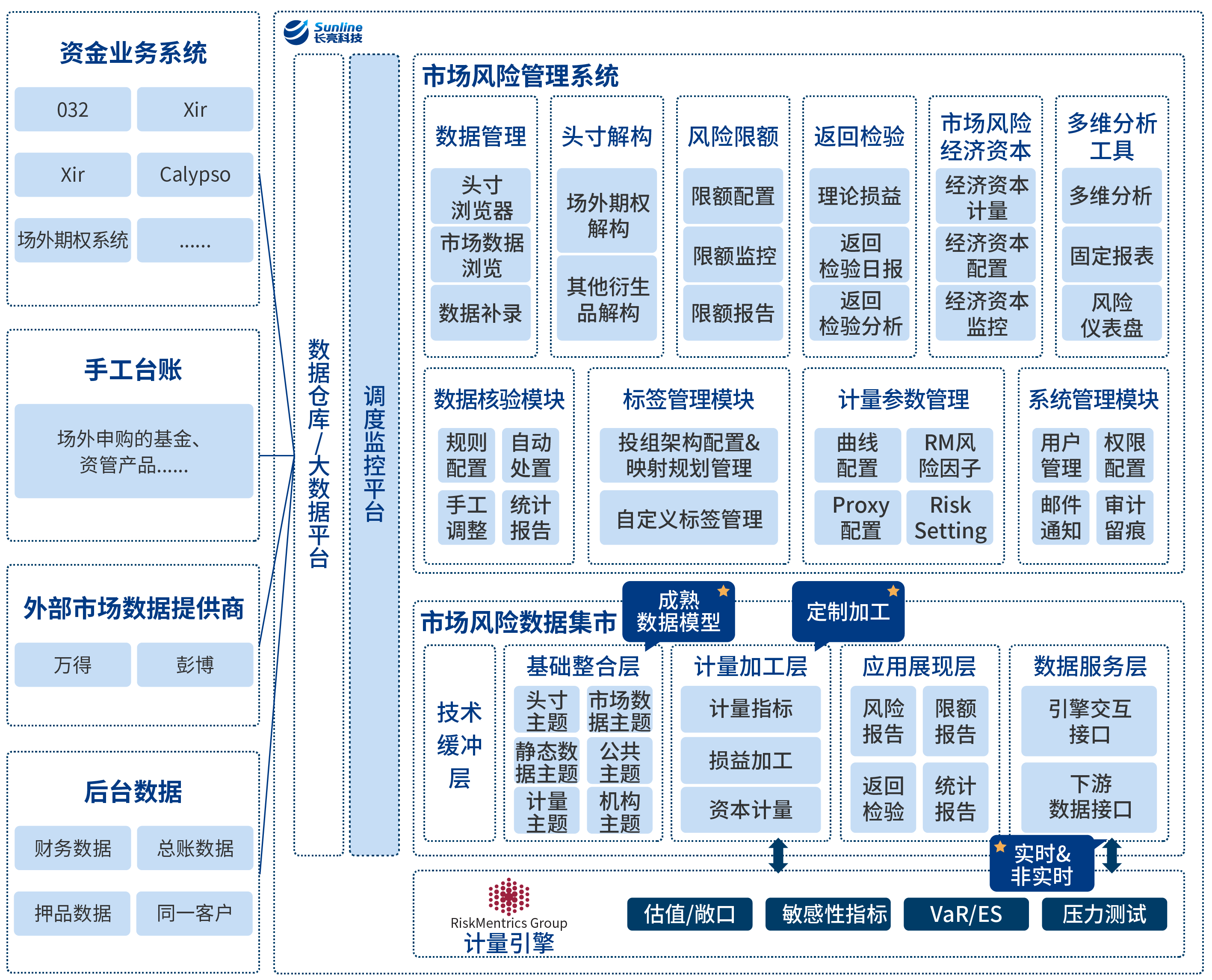 基于成熟的市場風險計量引擎和引擎廠商提供的相關(guān)產(chǎn)品及咨詢服務(wù),結(jié)合最新的監(jiān)管規(guī)定和領(lǐng)先的同業(yè)實踐,調(diào)研證券公司自身的系統(tǒng)和數(shù)據(jù)環(huán)境,完成數(shù)據(jù)到計量結(jié)果的全流程展示,并支持新產(chǎn)品及業(yè)務(wù)功能的個性化擴展,為證券公司提供專業(yè)的市場風險管理系統(tǒng)。