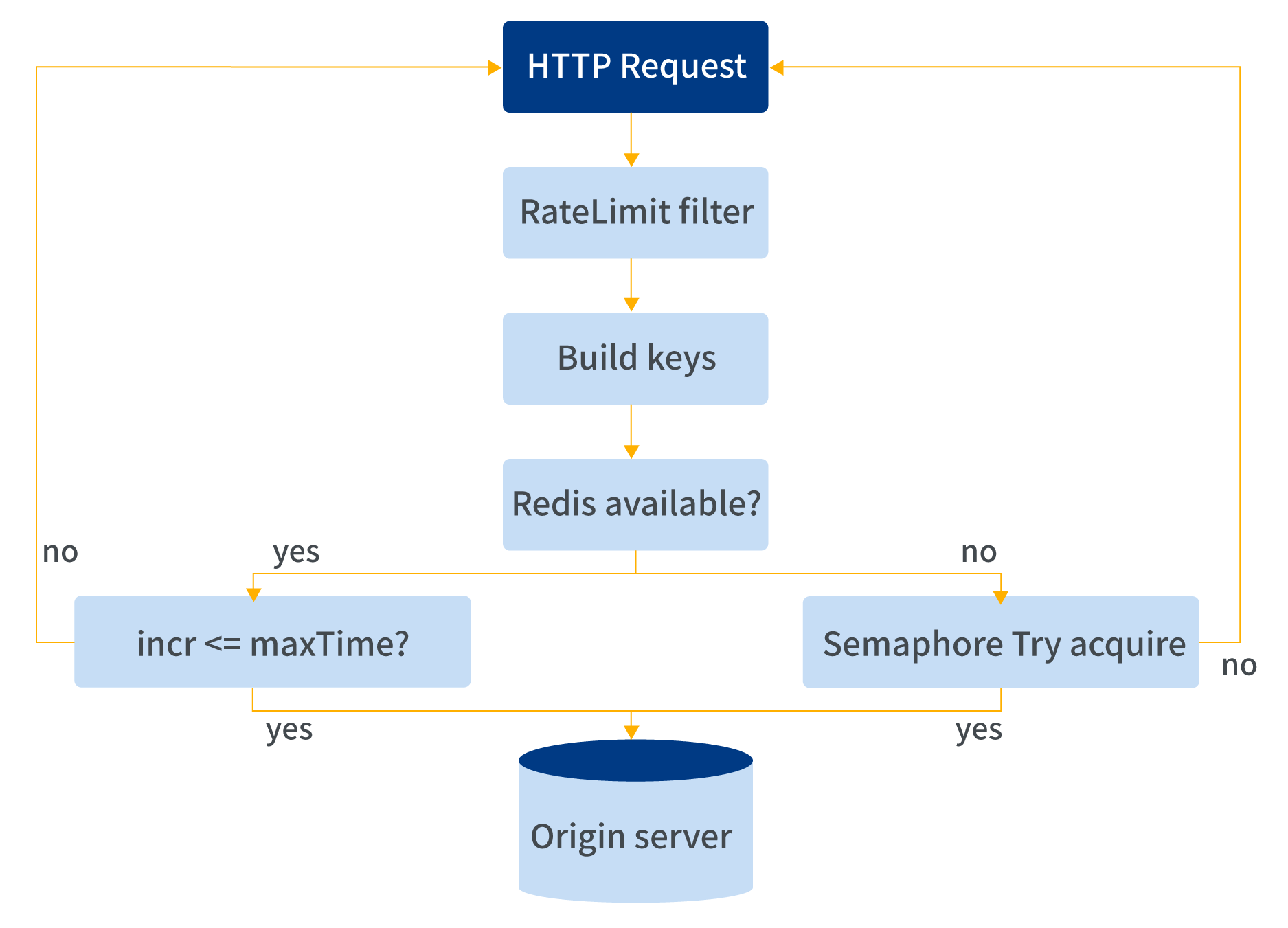 ? 先判斷當前實例的緩存是否有該key,如果存在則請求redis lua腳本,腳本中會對遍歷到的規則執行 incr rule,給對應的規則自增1,并判斷返回值,如果返回值小于等于最大值,則允許通過,否則拋出限流異常。